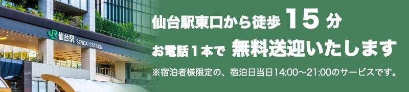 仙台駅東口より徒歩15分、JR仙石線榴ヶ岡駅より徒歩7分